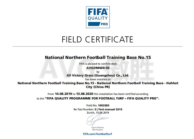 (AVG) D? án san bóng FIFA? t?i?Trung tam ?ào t?o Bóng ?á Qu?c gia Khu v?c phía?B?c (Trung Qu?c) là m?t trong nh?ng san c? vinh d? nh?n ???c ch?ng nh?n FIFA QUALITY PRO t? Liên ?oàn Bóng ?á Th? gi?i FIFA.