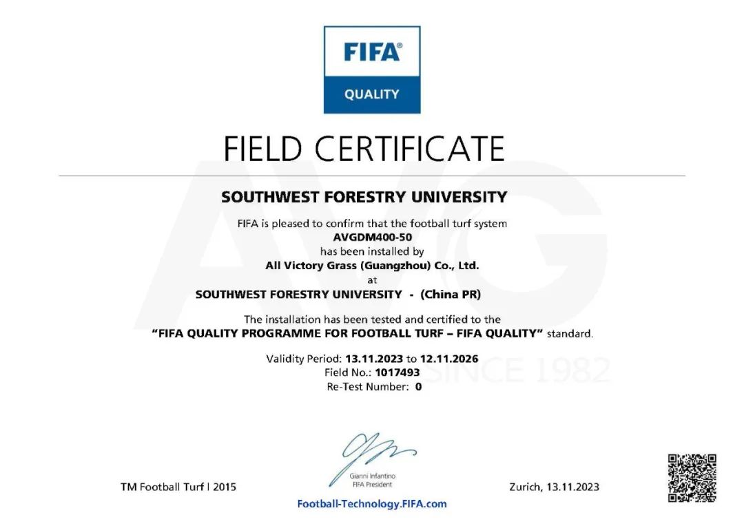 Ngày ??ng: 18-11-2023(AVG) Ngày 13/11 v?a qua, san v?n ??ng c?a tr??ng ??i h?c Lam nghi?p Tay Nam (Trung Qu?c) ?? v??t qua m?t cách xu?t s?c vòng ki?m tra ch?t l??ng b? m?t san c?, và ???c Liên ?oàn bóng ?á th? gi?i c?p Ch?ng ch? san bóng ??t chu?n FIFA.